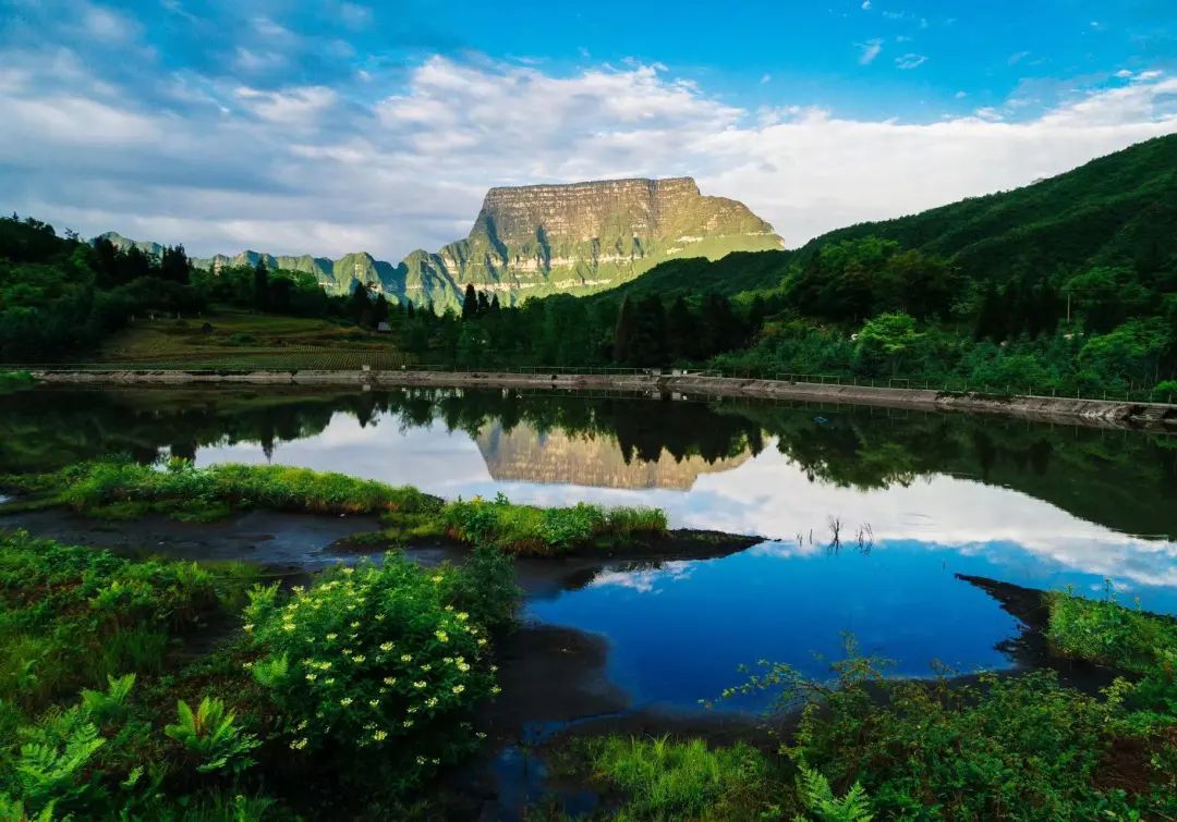 仲夏时节,瓦山之间,峰峦叠嶂,碧水如镜,青山浮水,倒影翩翩,两岸景色犹如百里画廊。大瓦山高山农旅片区,旅游事业蒸蒸日上,产业融合欣欣向荣,乡村振兴发展焕发新新活力。